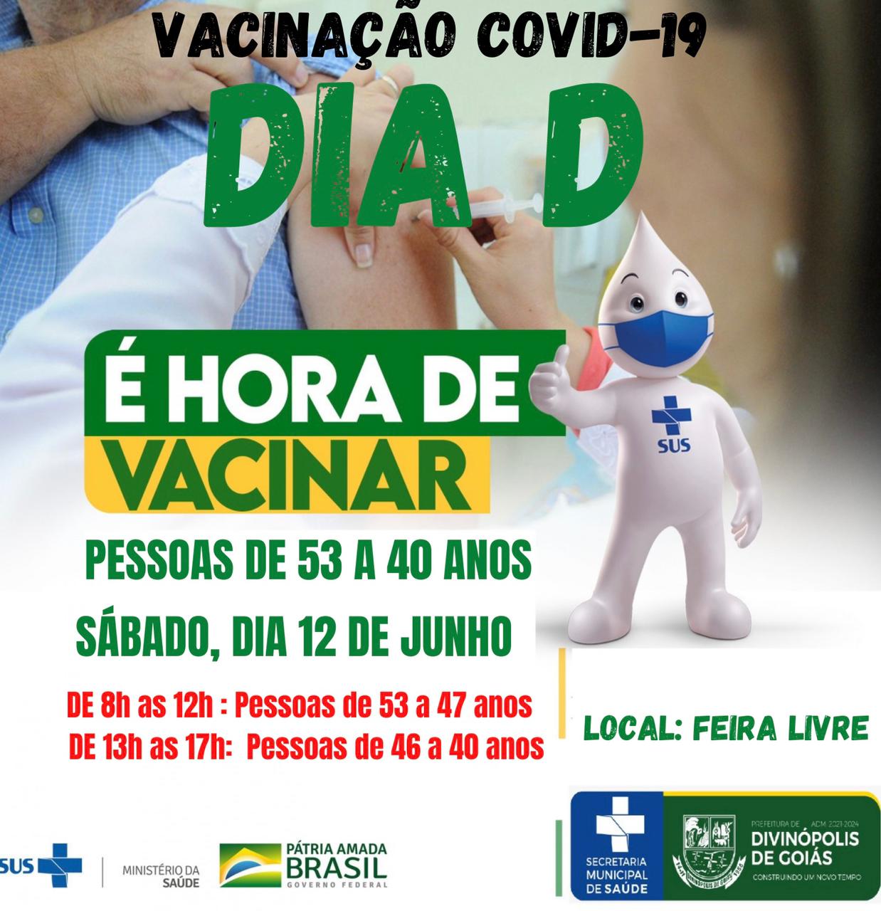 O Dia D, que acontece no próximo sábado, dia 12 de junho, atingirá a faixa etária de 53 a 40 anos, seguindo a ordem decrescente.