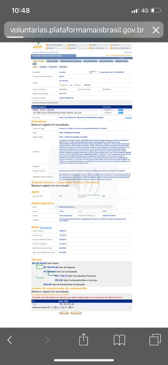 O convênio no valor de R$ 163 mil destinado para Divinópolis de Goiás será para educação ambiental; são lixeiras de coleta seletiva que serão instaladas em vários pontos da cidade, além de curso sobre educação ambiental.
