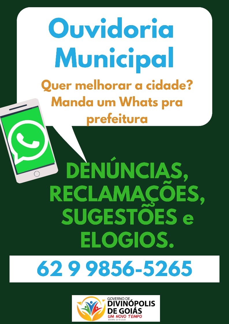 A Prefeitura de Divinópolis de Goiás, através da Ouvidoria Municipal, disponibiliza, a partir de hoje, uma nova plataforma de diálogo entre a comunidade e o serviço público.