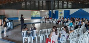 O curso disponível para toda equipe da rede municipal de Educação, ocorre integralmente de 16 a 18 de janeiro, no Clube Recreativo e Social Monjolo. O prefeito Charley Tolentino, participou da abertura do evento juntamente com a Diretora da Escola Municipal Luís Pereira Cirineu, Magna Estela e da palestrante Sheila Maroccolo. “