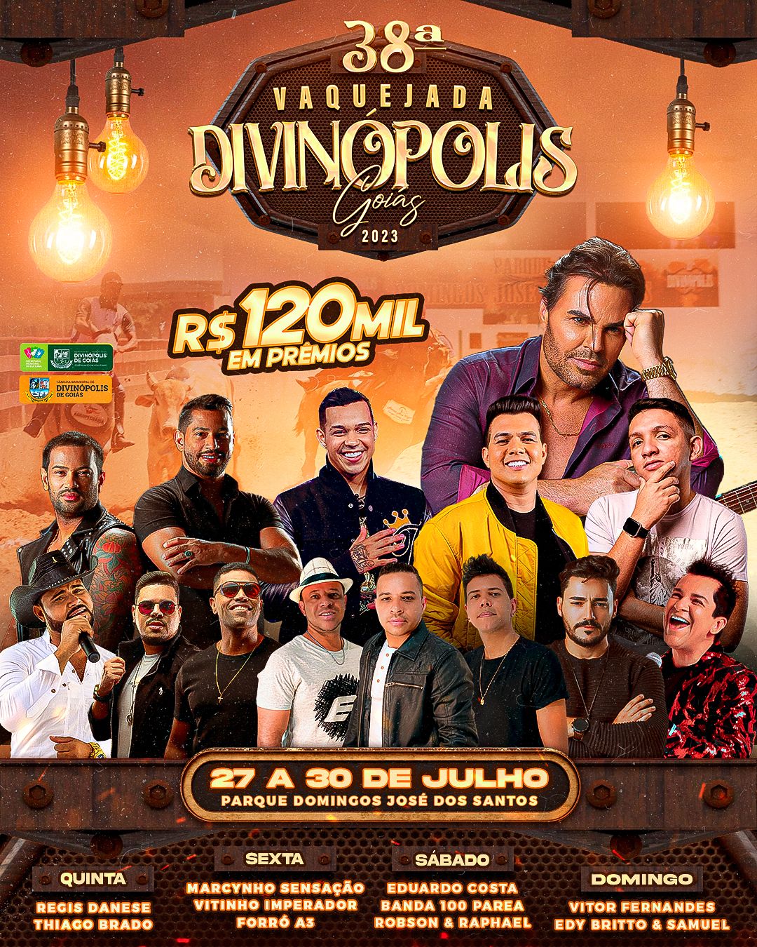 A Prefeitura de Divinópolis de Goiás, por meio da Secretaria Municipal de Cultura, divulga a programação oficial da 38ª Vaquejada do Município.